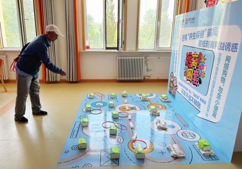 宣讲结束后,该行特别设置了“擦亮眼睛谨防‘圈套’”小游戏,现场布置印有防诈宣传标语的生活用品(购物袋、纸巾盒、老花镜),通过“沉浸式”游戏体验强化金融知识记忆点。