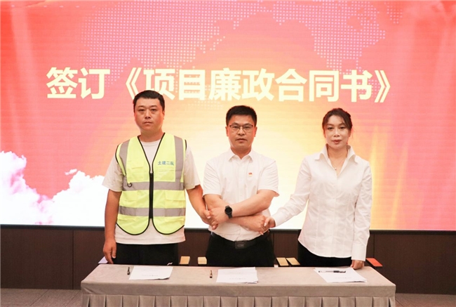 启动仪式上,穆兰、谢彬为“联防联控”揭牌;沙斌、谢彬向项目青年员工赠送廉洁文化书籍;郭福生、杨志君为“尚廉”廉洁文化示范点揭牌;杨志君宣读了“联防联控”方案,并同分包分供商代表签订《项目廉政合同书》;项目职工代表进行了廉洁从业集体宣誓;与会人员观看了大连市纪委、中建八局纪委联合拍摄的微电影《系扣》,并共同于廉洁承诺板上签字。