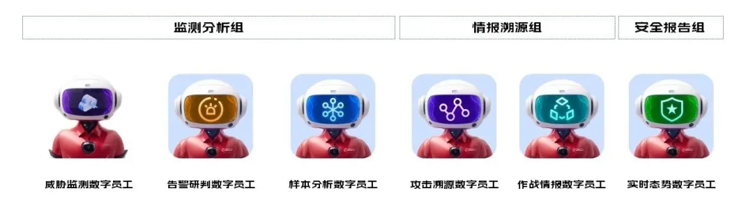 这不仅极大降低了用户单位的技术门槛,在360安全大模型的加持下,AI数字员工防守军团以7*24小时在岗的工作效率和能力,助力广大用户单位省时省力、高质高效地实现常态化安全运营,打造AI时代的数字安全新范式。