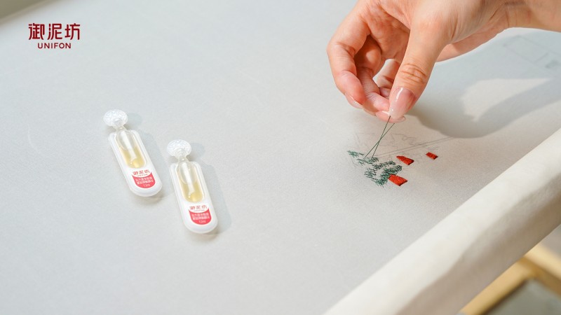 匠心共鸣:湘绣「掺针」需数十层丝线叠加的耐心,恰似品牌对东方原料的长期钻研(如采用古法工艺淬炼草本成分);