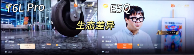 顺带一提,同样是新款智能电视,居然连生态都能差很大,在同平台同账号同片源下,我家的T6L Pro有4K高清版,而另外一款只有1080P!
