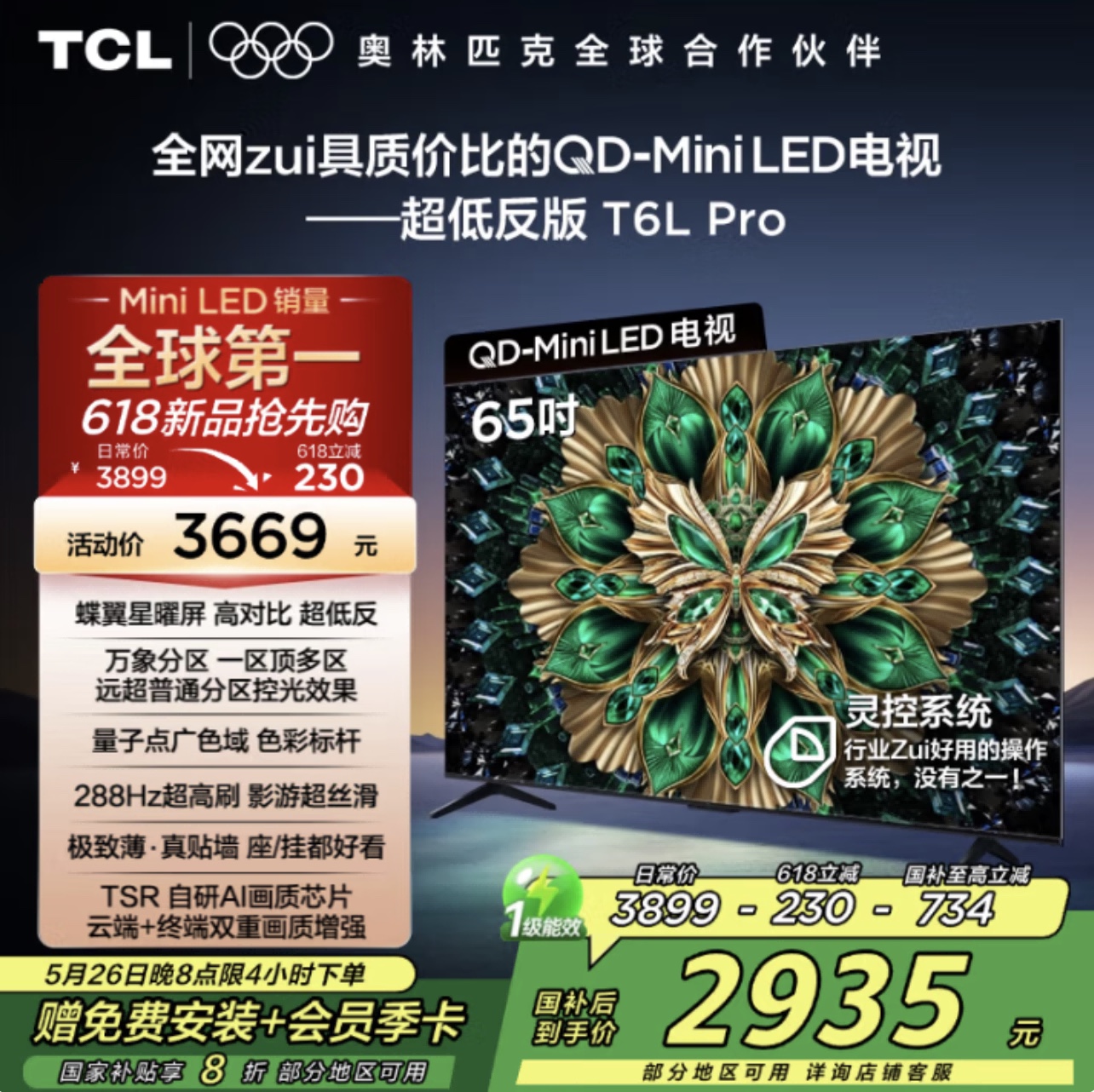 以TCL今年推出的新品T6L Pro为例,其核心突破在于将“蝶翼星曜屏、万象分区、量子点Pro 2025”等曾经的万元级配置下沉至3000元档,为消费者带来了前所未有的高质价比选择。