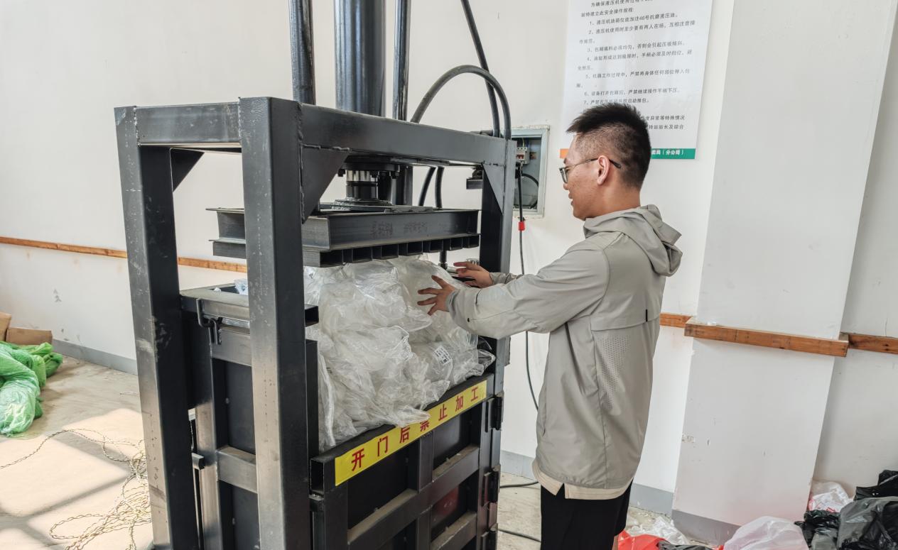 (对回收塑膜进行打包)