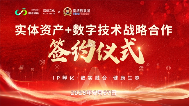 6月27日下午,浙江蓝桃网络科技有限公司(以下简称“泡泡星链”)与泰迪熊产业集团(以下简称“泰迪熊”)正式达成了具有里程碑意义的战略合作。