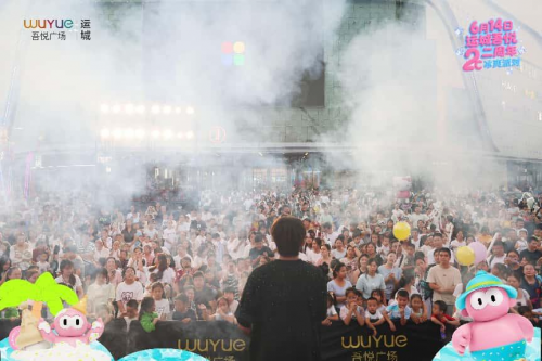 巨型嘟嘟仔雕塑前,孩子们雀跃地拍照打卡;音乐节现场,万名观众随节奏挥舞荧光棒;餐饮区收银台前,持“50团100”优惠券的市民排起长队...新城控股西北区域运城吾悦广场2周年庆的热闹景象,成为这座城市六月最生动的商业图景。
