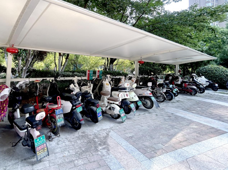 电动自行车便捷环保,但充电安全无小事。 在海顿公馆小区,一处升级改造的非机动车停车棚成了居民口中的“安心驿站”。这里停车区划线清晰、车辆摆放井然有序,更引入了智能充电系统——居民只需手机扫码,即可轻松启动充电,操作便捷又安全。尤为令人安心的是,车棚内消防器材配备齐全,喷淋系统覆盖到位,构筑起一道坚实的“防火墙”。