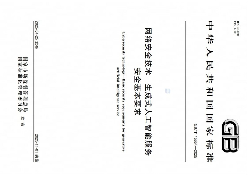 图5:国标 GB/T 45654-2025《网络安全技术 生成式人工智能服务安全基本要求》