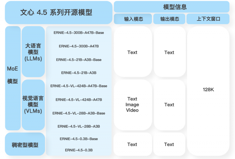 文心4.5系列模型均使用飞桨深度学习框架进行高效训练、推理和部署。实验结果显示,该系列模型在多个文本和多模态基准测试中达到SOTA水平,在指令遵循、世界知识记忆、视觉理解和多模态推理任务上效果尤为突出。模型权重按照Apache 2.0协议开源,支持开展学术研究和产业应用。此外,基于飞桨提供开源的产业级开发套件,广泛兼容多种芯片,降低后训练和部署门槛。