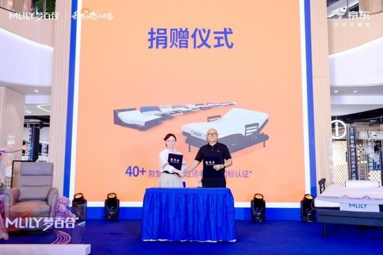 在发布会现场,还举行了一场公益捐赠仪式,MLILY梦百合向南京本地悦华安养院捐赠睡眠产品,以行动助力“老有安眠”。