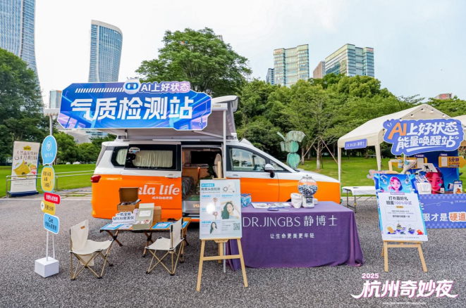 6月27日至29日,由杭州市文化广电旅游局、杭州市上城区人民政府等主办的“知音杭州·2025杭州奇妙夜”活动在钱江新城波浪文化城精彩上演。Vala携手健康科技企业静博士受邀参展,在市集板块共同推出“AI上好状态”移动美容车,通过创新的多功能车载空间,为城市文旅消费注入全新活力。