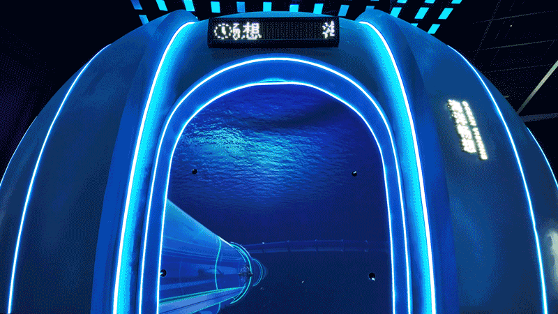 打造半球幕空间,借投影技术,将全球变暖、漂浮城市等内容,以沉浸式迷你剧场的形式呈现。当我走进球舱,可以直观感受气候危机挑战与未来水上城市构想,让抽象环保议题,转化为沉浸式体验。