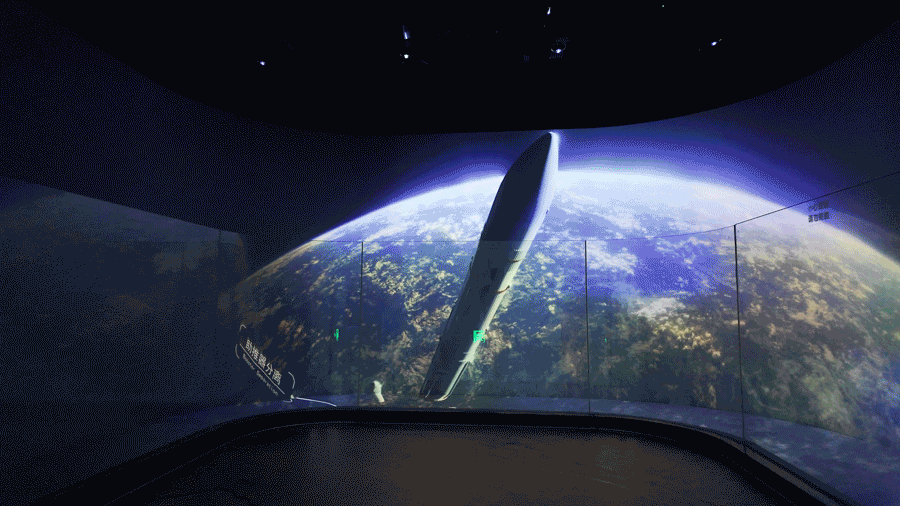 以三面投影+地面投影构建沉浸式CAVE空间,观众沉浸式观影,跟随“祝融号”一同着陆火星,开启惊险太空探索之旅。