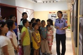 随后,民警引导大家参观了出入境查验大厅、庄严国门和神圣界碑。在装备展示区,各类现代化警用装备整齐列阵。民警详细介绍了防暴盾牌、警用枪支、抓捕器等装备的性能特点与操作规范,并进行了现场演示。面对大家的踊跃提问,民警耐心细致地一一解答。在民警的安全监护下,孩子们兴奋地触摸、体验现代化装备,过了一把“警察瘾”,对移民管理警察的崇敬与自豪的笑容洋溢在脸上。