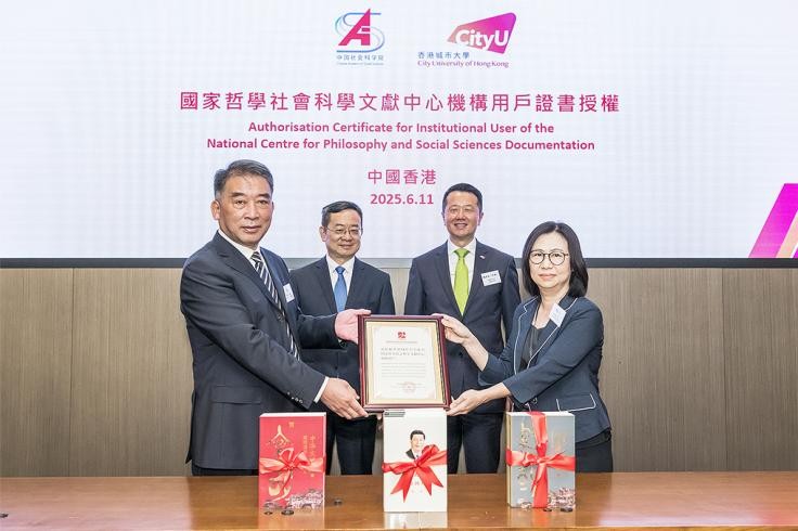 此外,中国社科院语言学重点实验室与港城大翻译及语言学系亦宣布双方的合作协议,旨在整合双方优势资源,共同推动语言学领域的创新发展。为进一步加强学术资源共享,中国社科院图书馆向港城大致赠“国家哲学社会科学文献中心机构用户授权证书”,并向港城大图书馆赠书。国家哲学社会科学文献中心立足全国哲学社会科学领域,开展哲学社会科学文献信息资源建设和服务,截至2025年5月,中心上线学术资源总量2700多万条,此次资源共享将极大便利港城大师生更加全面地获取丰富的哲学与社会科学文献资源。