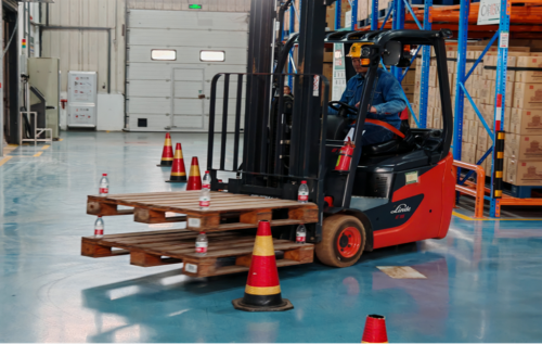 图为安徽宿州烟草物流中心叉车员王保军日常训练现场