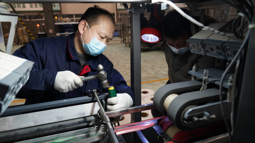 图为安徽宿州烟草物流中心机修班组人员抢修设备