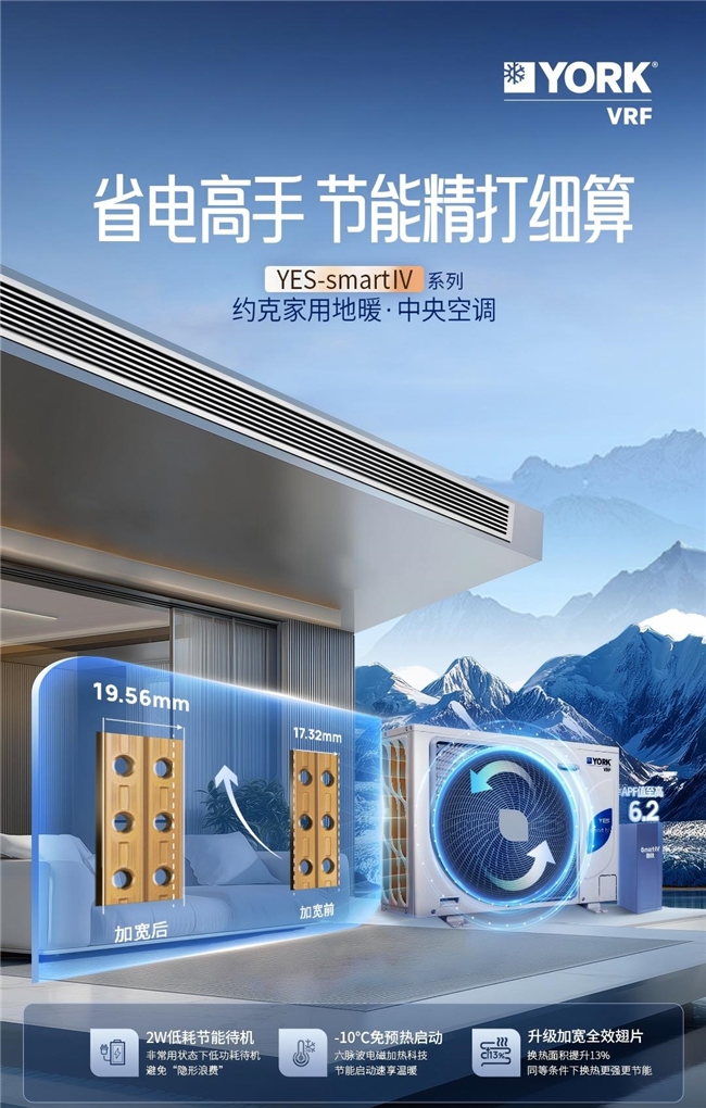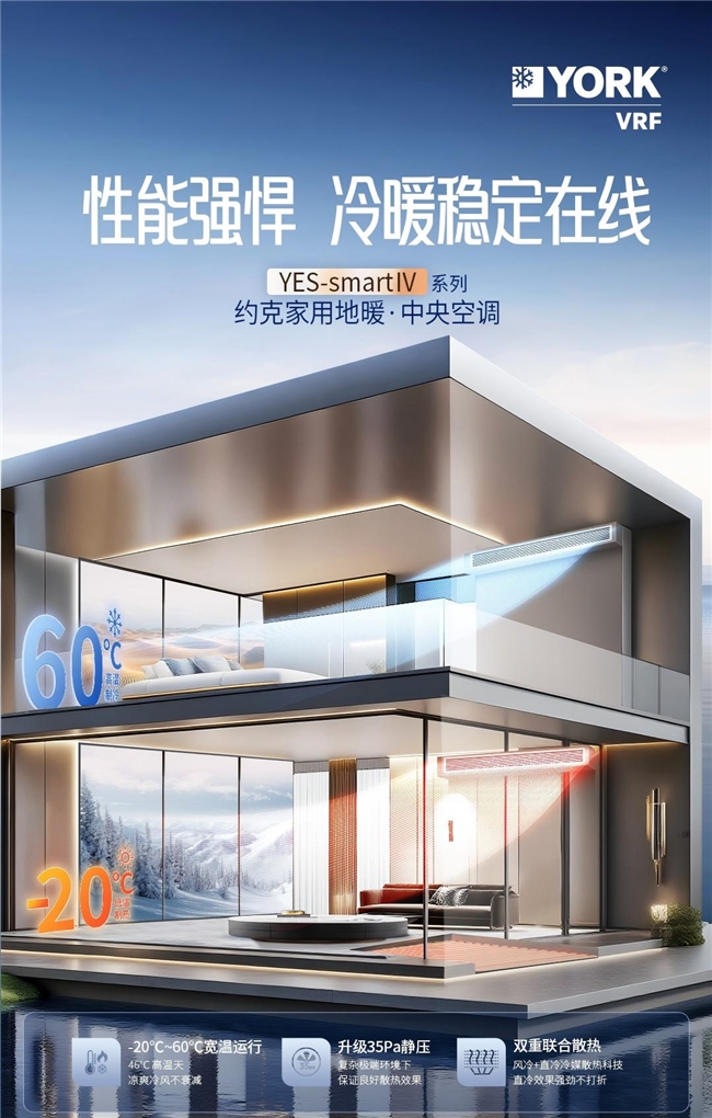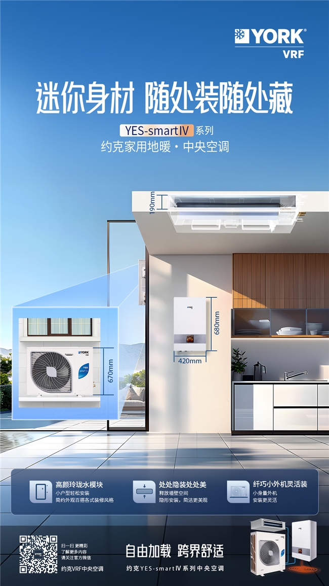 在追求品质生活的时代,空调早已超越简单的温度调节功能,成为衡量家居舒适度的重要标尺。约克VRF中央空调推出的YES-smart Ⅳ系列全新上市,以一机多享受的高质价比、10kW玲珑水模块、60℃高温不停机、升级高速物联网模块、APF高达6.2等多重优势,灵活适配不同家居场景,为更多家庭带来“自由加载 跨界舒适”的品质家居体验。