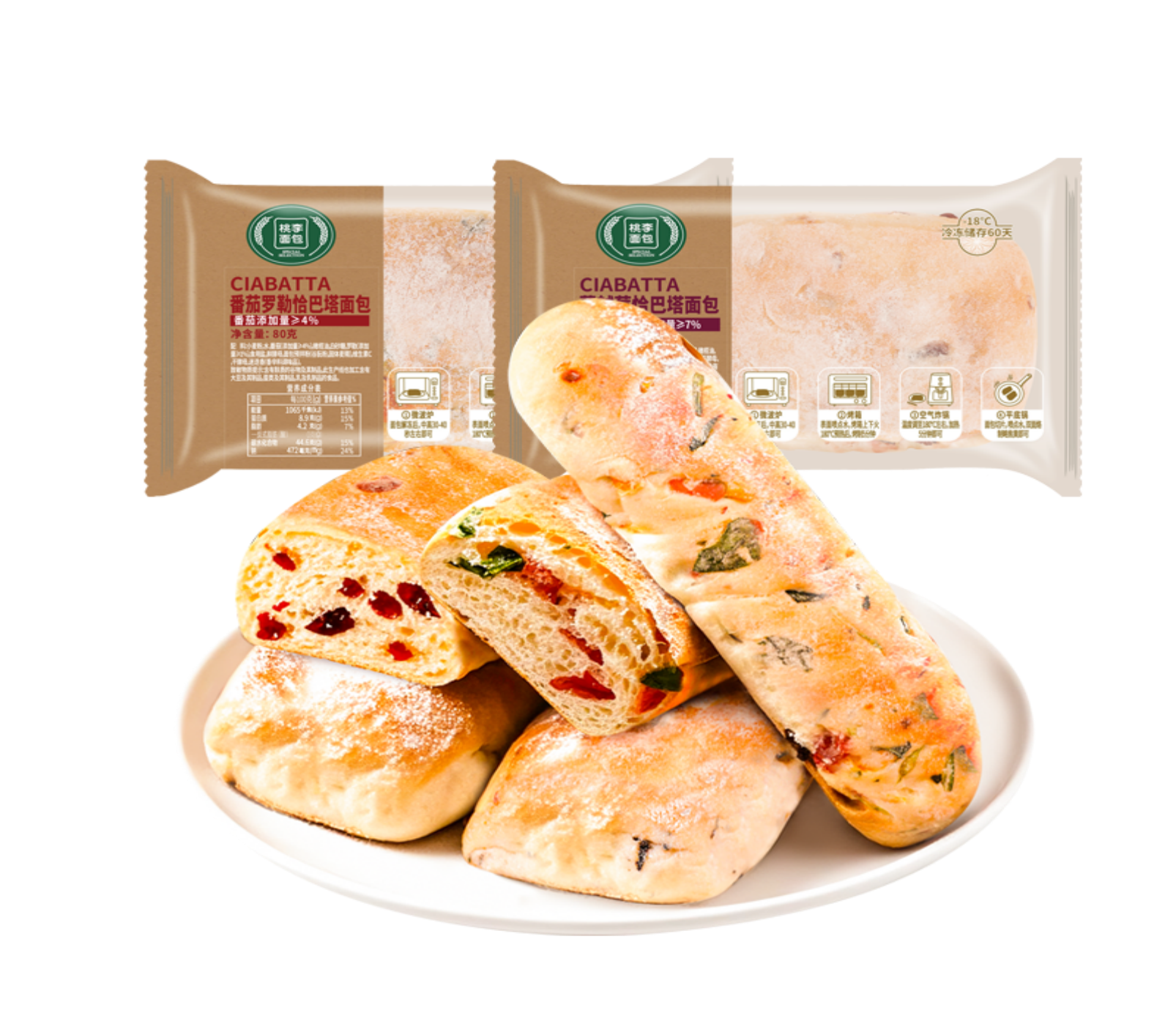 以新品恰巴塔面包为例,通过液种低温发酵工艺,既保留了外酥内软经典欧式恰巴塔的口感,又麦香浓郁,契合消费者对“低脂低糖、全麦高纤维”的期待。另一款新品吟酿切片面包则采用汤种工艺,48小时低温熟化技术,利用面粉糊化后锁住水分的特性,无需依赖山梨酸钾、丙酸钙等防腐剂即可延长保鲜期,同时实现“0反式脂肪酸”“0防腐剂”的清洁配方。