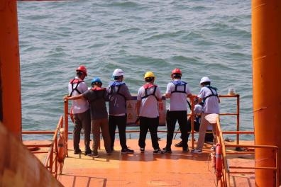 到达海上平台后,实践队员们第一时间展开了环境勘察。现场浪涌翻滚,给无人船作业和检测工作带来诸多挑战。面对复杂多变的近海环境,团队成员集思广益,围绕作业流程、检测方案和安全保障等关键问题展开充分讨论,不断调整优化操作计划。