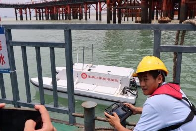 依托集美大学航海学科优势和“工海”特色背景,实践队聚焦智能化海上检测新技术。无人船装备高精度传感器和智能巡检系统,能够初步实现施工平台钢结构的检测,替代原本高成本、高危险的人工巡检,有效提升了平台巡检的自动化与智能化水平。此次技术实践的顺利完成,不仅为厦金大桥的安全施工提出了新思路,也为海洋工程智能检测技术的发展贡献了青春力量。