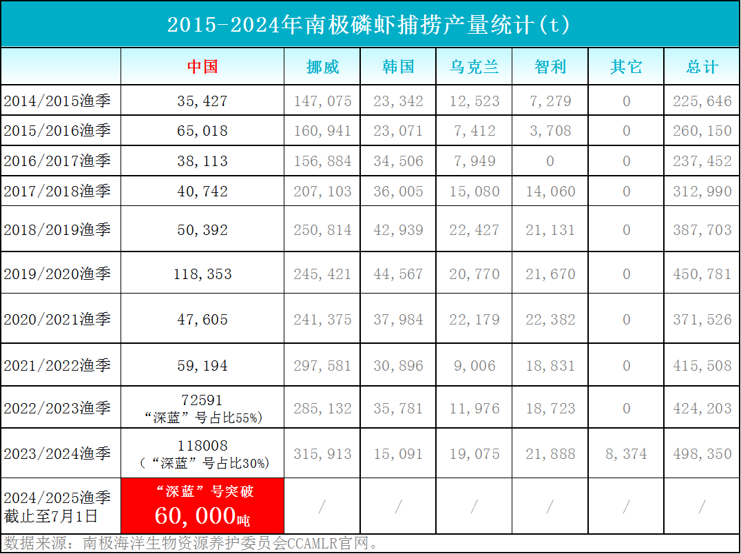 (图:2015-2024年全球各国南极磷虾捕捞量)