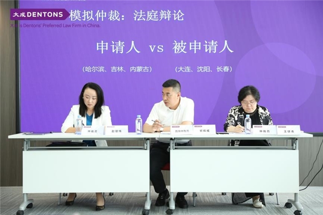 模拟仲裁的合议庭由大成西宁分所主任、高级合伙人祁辉成律师,大成沈阳分所董事局董事、高级合伙人赵银伟律师,大成大连分所董事局董事、二级合伙人王健勇律师共同组成。观察员由大成公司与并购重组专业委员会牵头人、高级合伙人韩光律师、大成公司与并购重组专业委员会联合牵头人兼秘书长、高级合伙人陈晓霞律师、大成长春分所管委会主任、高级合伙人陈秀丽律师,大成内蒙古分所管委会主任、高级合伙人秦新民律师,大成沈阳分所管委会主任、高级合伙人郭挺睿律师,大成哈尔滨分所管委会主任、高级合伙人于奇律师,大成北京总所高级合伙人、中国政法大学证据法学博士李涛律师担任。