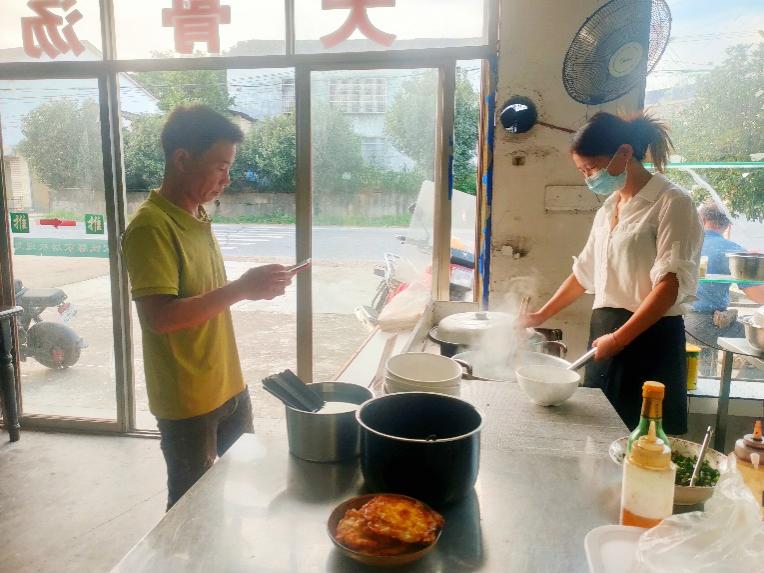 周玲则是店里的坚实后盾。她不仅负责店内的日常经营,还盘下了隔壁的门店,开起了一家大骨汤粉店。每天清晨,当第一缕阳光洒进小店时,她已经开始在厨房里忙碌,精心熬制大骨汤,准备各式各样的粉面。浓郁的香气从店里飘出,吸引着过往的村民。