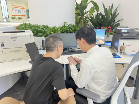 (图为烟草窗口工作人员为群众讲解线上办理流程)