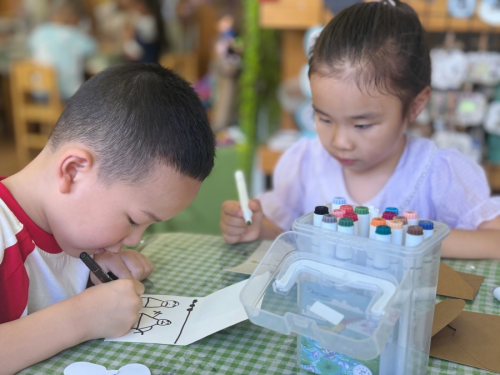 图为小朋友们认真绘画。