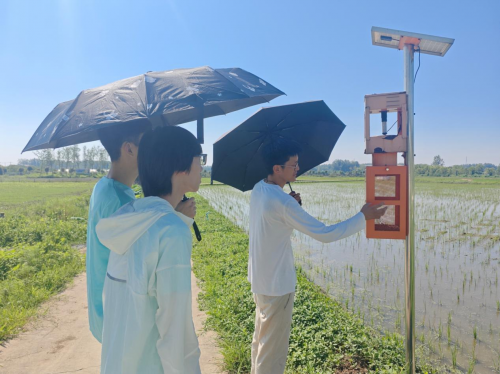 在与新农人的朝夕相处中,研究生们触摸到了乡村振兴最鲜活的脉搏 —— 这里不仅有智能大棚里闪烁的传感器灯光,更有新农人眼中对土地的炽热深情。当见到太阳能杀虫灯在田地间工作,骆以云向我们介绍道:“我们采用的太阳能杀虫灯,既可以捕获成虫,抑制繁衍,同时又可以不用化学农药赶尽杀绝。”通过一段段讲述,同学们意识到科技在现代农场中的妙用,也意识到了新时代的乡村振兴正是需要这样的创新与坚守。