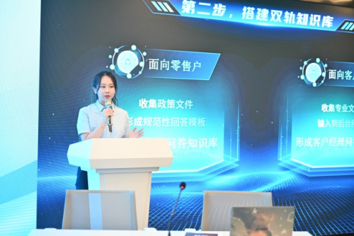“‘义答’机器人能捕捉零售户提出问题中的关键词,触发预设好的回答,这样零售户就可以随时向它提问,能更及时的满足零售户的需求,有效提高客户满意度。”青年员工俞静正向大家介绍最新开发的AI小工具。