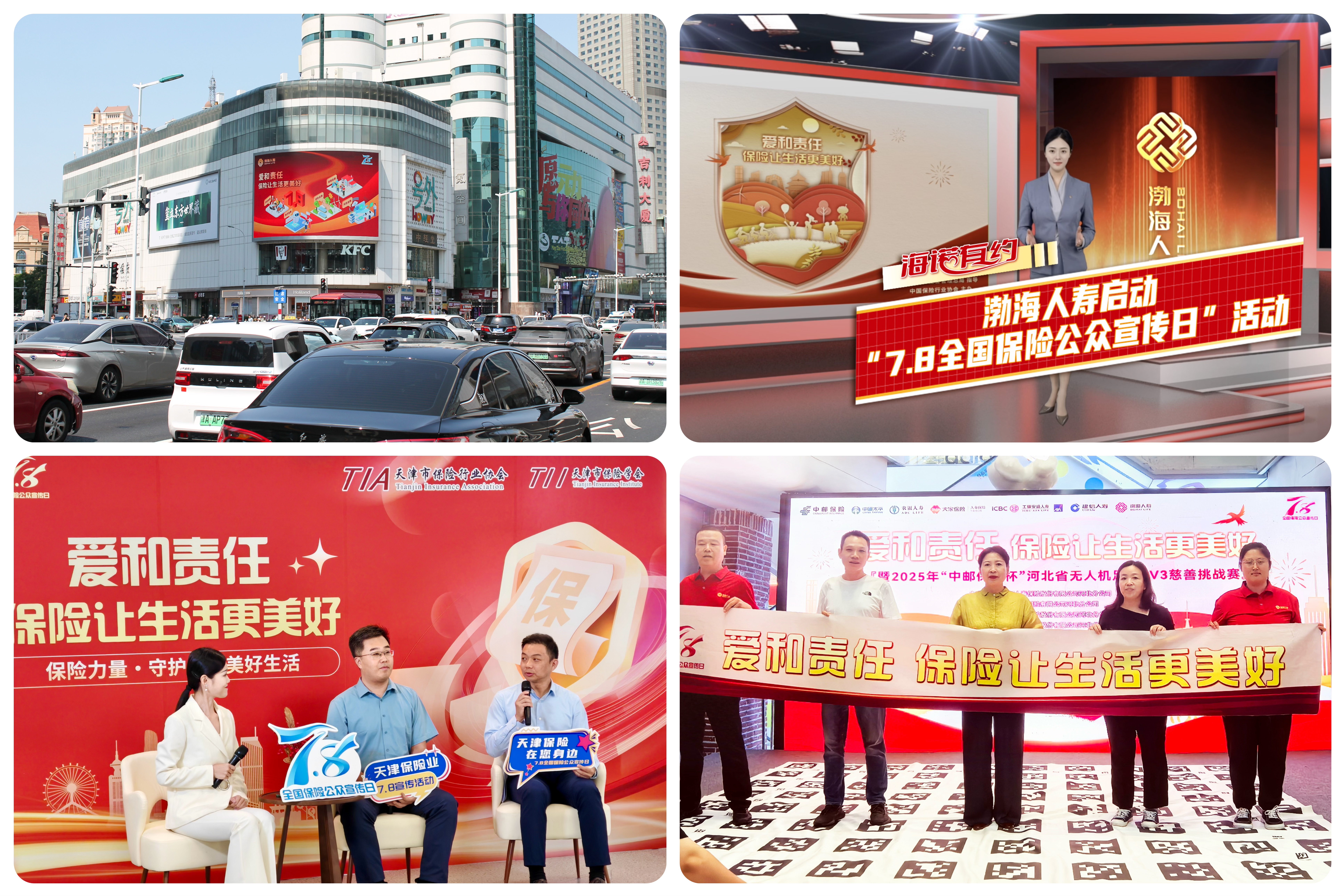 7月6日,渤海人寿天津分公司走进天津海河传媒中心经济广播与生活广播联合主办的“经生有你听友俱乐部”市集活动,现场超3000名市民踊跃参与。7月8日,石家庄中心支公司积极参与“河北省无人机足球 3V3 慈善挑战赛”开幕式,总经理时雯亲临揭幕,携手同业开展 7.8 保险公众宣传日活动。