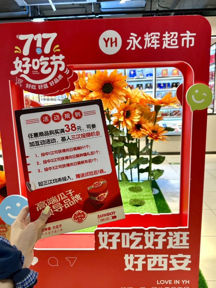 三胖蛋始终扎根于农业,从源头把控品质,每一颗瓜子都饱含着充足的阳光,粒大仁香,让消费者品尝到自然的馈赠。在本次“永辉717 好吃节”现场,三胖蛋通过精心打造的向日葵元素实景,将休闲、积极阳光的氛围融入购物环境。向日葵花开的景象不仅为消费者带来视觉享受,更传递出三胖蛋从种到收全程品控、扎根农业守望花开的品牌精神。