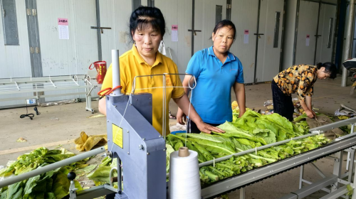 在石桥镇桃花源村的烘烤工场,新引进的编烟机成为当之无愧的“明星”。烟农周荣斌将一捆烟叶送入机器,机械臂灵活翻转,仅需数秒,一杆杆间距均匀、松紧适宜的烟叶便整齐排列。“过去纯靠手工,累断腰杆一天也编不了多少。如今效率翻了几番,成本还降了!”他感慨道。不远处,数十座标准化烤房正满负荷运转,精准控温系统让每片烟叶实现从“绿”到“金”的完美蜕变。