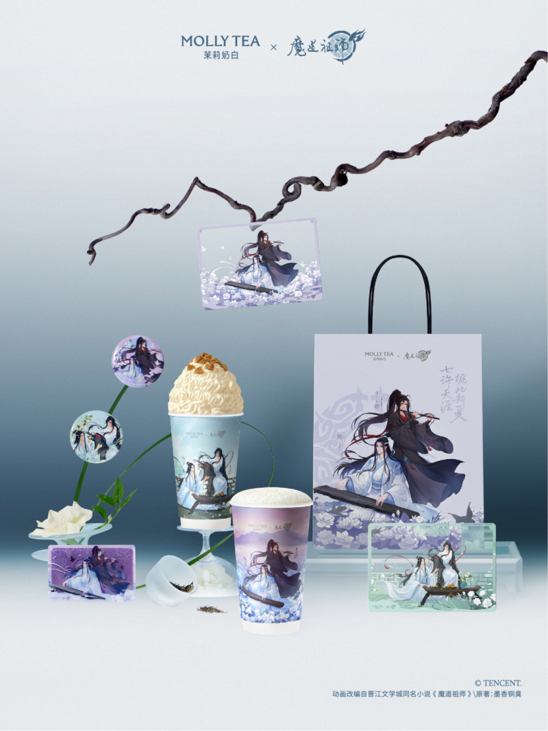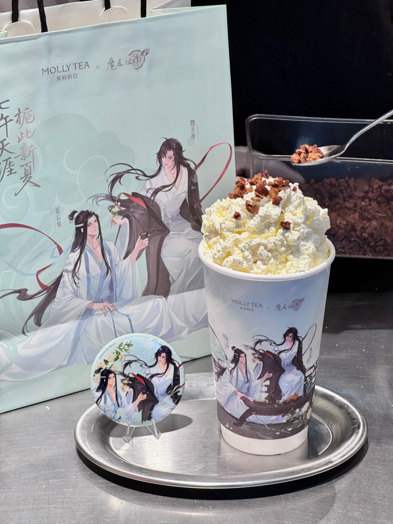 这次联名中,茉莉奶白品牌与《魔道祖师》IP之间,通过产品的升级、周边设计的情绪共鸣以及线下活动的沉浸式体验,实现了彼此加成,它不仅提供了一杯饮品,更搭建了一个“情感容器”——让粉丝在喝到熟悉味道的同时,找到同好、分享喜悦、延续热爱。这种“情感+产品+体验”的三重绑定,让本次品牌联名活动超越了普通的IP联名,成为一次年轻人的“文化共庆”。