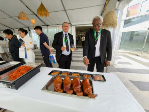 在这场汇聚了全球逾1500名代表的盛会上,新鲜出炉的北京烤鸭无疑是全场焦点。当金黄油亮、香气四溢的烤鸭呈现在宾客面前时,现场赞叹连连,各国代表纷纷驻足品鉴。一位欧洲代表赞叹道:“这才是真正的中国味道!它完全刷新了我对中餐的印象,简直是舌尖上的艺术。”