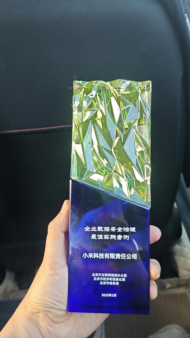 在数据安全方面,小米荣获由北京市互联网信息办公室、经济和信息化局、商务局联合颁发的「企业数据安全治理最佳实践案例」奖项,标志着小米过往三年的数据安全治理实践效果获得外部权威认可。