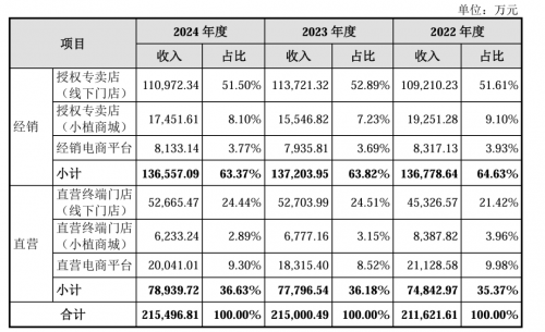 渠道方面,植物医生采用“直营+经销”模式。截至2024年末,植物医生品牌线下连锁门店共4328家,其中授权专卖店3830家、直营终端门店498家。2022年至2024年,植物医生经销模式业务收入占主营业务收入的比重分别为 64.63%、 63.82%和 63.37%,占比较高。