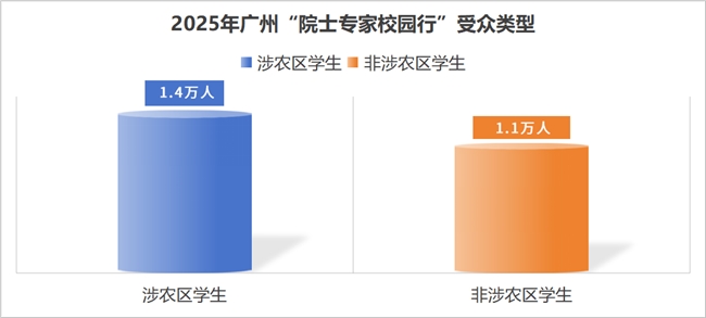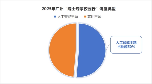 2025年广州“院士专家校园行”活动由广州市科学技术协会、广州市教育局、中国科学院广州分院联合主办,上半年活动亮点纷呈:3名院士、39名专家学者,开展科普讲座74场,其中人工智能主题讲座38场。惠及学生受众2.5万人,其中,涉农区学生1.4万人、非涉农区学生1.1万人。受众学段以小学最多,其次为初中、高中。超20家媒体参与采访报道,全网传播量超100万人次。