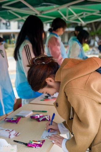 同学们专注投入的神情令人动容,大家都希望通过自己的一笔一划,传递温暖与力量。活动现场氛围热烈,前来参与写贺卡的同学络绎不绝,大家都希望能为山区儿童送上一份特别的心意