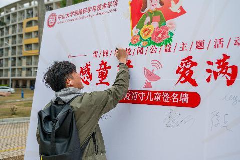 活动现场,一面醒目的“关爱留守儿童签名墙”矗立着,许多同学纷纷驻足,郑重地签下自己的名字,以表达对山乡儿童的关怀。