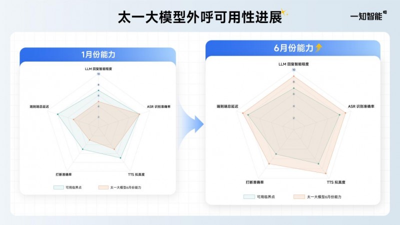 在大模型外呼可用性的严苛测试评估中,「太一语音对话Agent」在短短5个月内实现了显著的技术跨越。尤其在6月份的权威测试中,其核心性能指标取得全面跃升。特别是在端到端总延迟、打断准确率、TTS拟真度、LLM回复智能程度这四大关键维度,「太一语音对话Agent」均展现出行业领先的卓越表现。这一系列突破性进展,标志着其在系统稳定性、语音交互精准度与复杂场景适应性等核心能力上,均已达到顶尖可用性水准,为高要求外呼场景提供了坚实可靠的技术底座与卓越的商业价值保障。