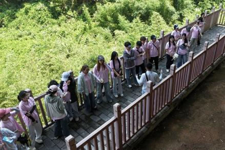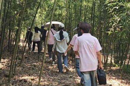 博物馆参观结束后,实践队深入东溪窑遗址寻根溯源。远远望去,几座龙窑的残基如卧龙般伏在山坡上,窑壁的红烧土在阳光下泛着暗红光泽。沿着竹林小路,队员们放慢脚步,手持记录本和相机,仔细观察遗址的保存状况,并不时交流着对遗址保护范围划定的看法,联想到《文化遗产保护法》中关于遗址保护的具体条款。