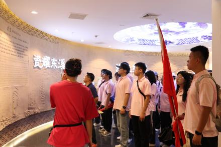 “青榕”基层服务践行团的队员们满怀期待,在讲解员的引领下踏入这座承载着“海上丝绸之路”记忆的场馆——东溪窑博物馆。从入门处的巨型东溪窑全景沙盘,到展厅两侧按年代陈列的瓷器序列,队员们的目光被一件件珍品牵引,仿佛穿越回明清时期窑烟鼎盛的岁月。