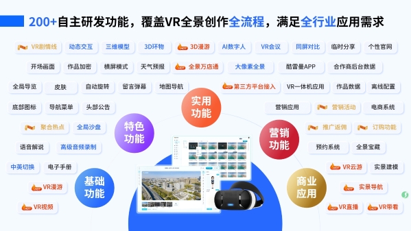 基础服务:VR 全景搭建 + AI 功能标配,功能组合多样,客单价提高,还能适配多场景要求;