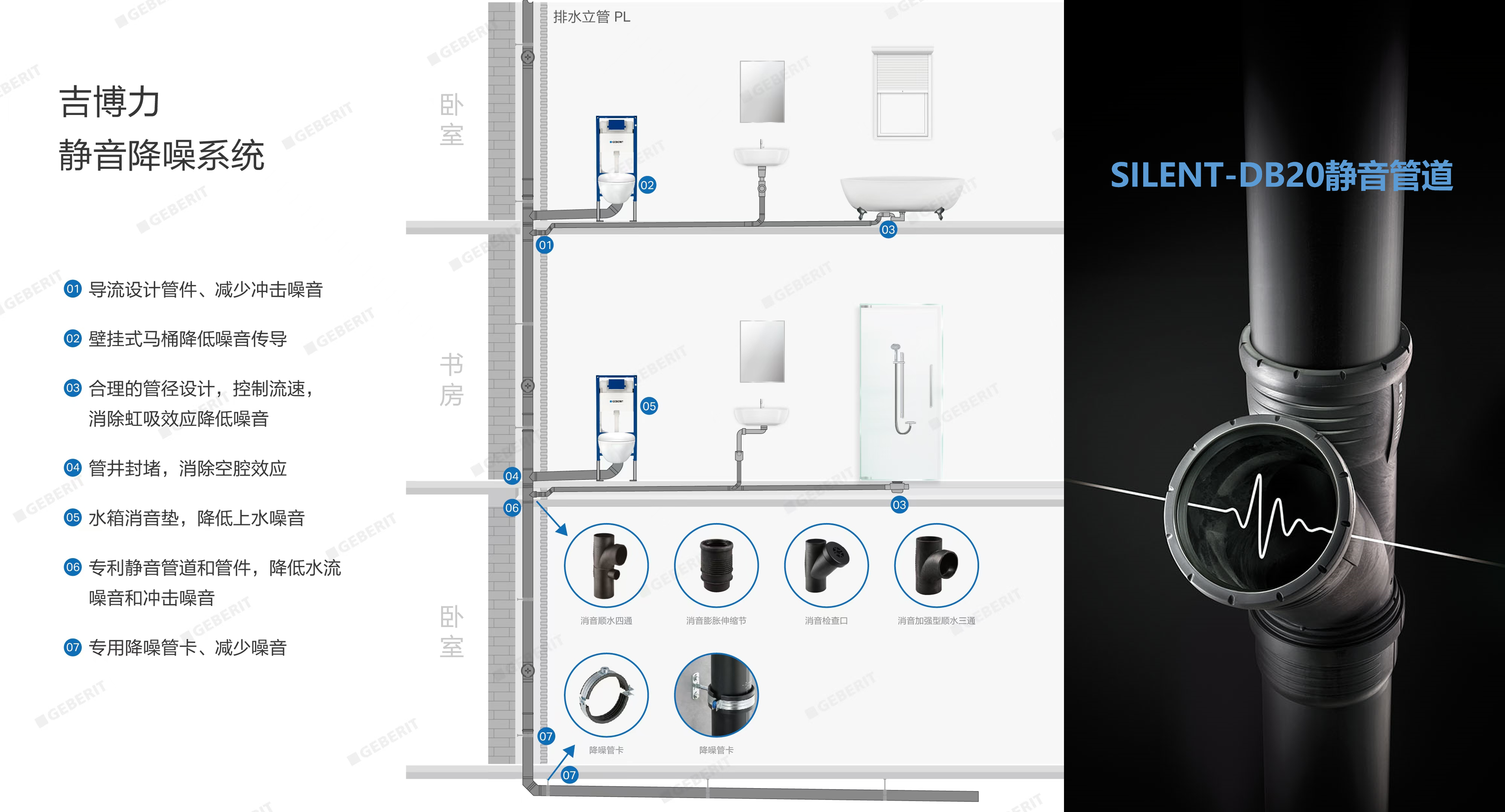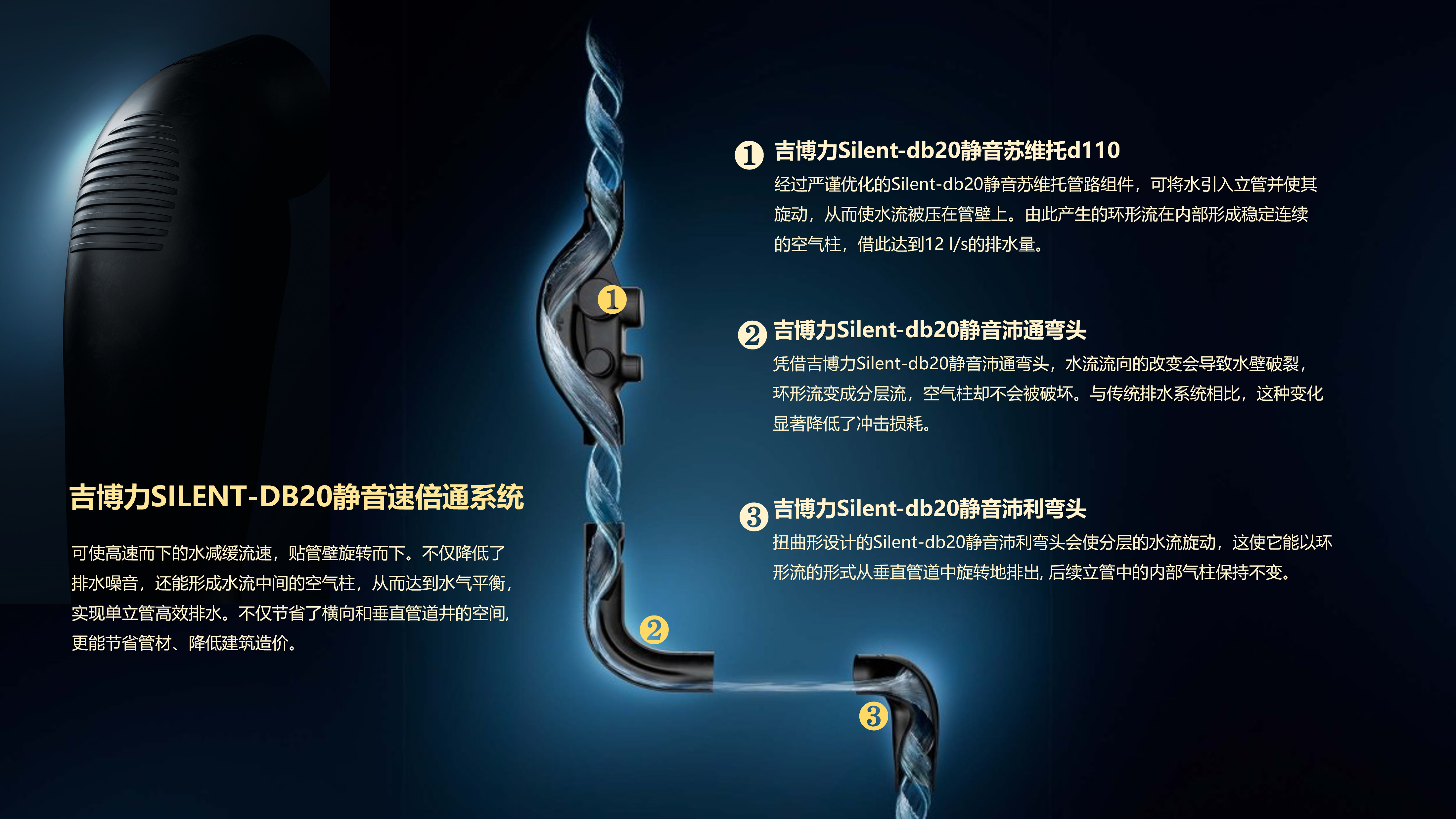 如果说Silent-db20静音管已经解决了水流噪音、管壁振动噪音和管道晃动传导噪音的难题,作为行业前驱,吉博力计划于2025年下半年强势推出的Silent-db20静音速倍通系统,将一举解决行业的最后一公里。