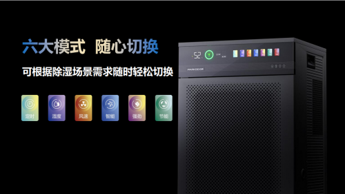 屏幕设计了超宽炫彩大屏幕,一条界面即可完成所有操作,操作角度符合人体工学设计,轻松完成大空间除湿干爽任务。可以依据除湿场景需求随时切换定时、湿度、风速、智能、强劲、节能等模式,交互智能。