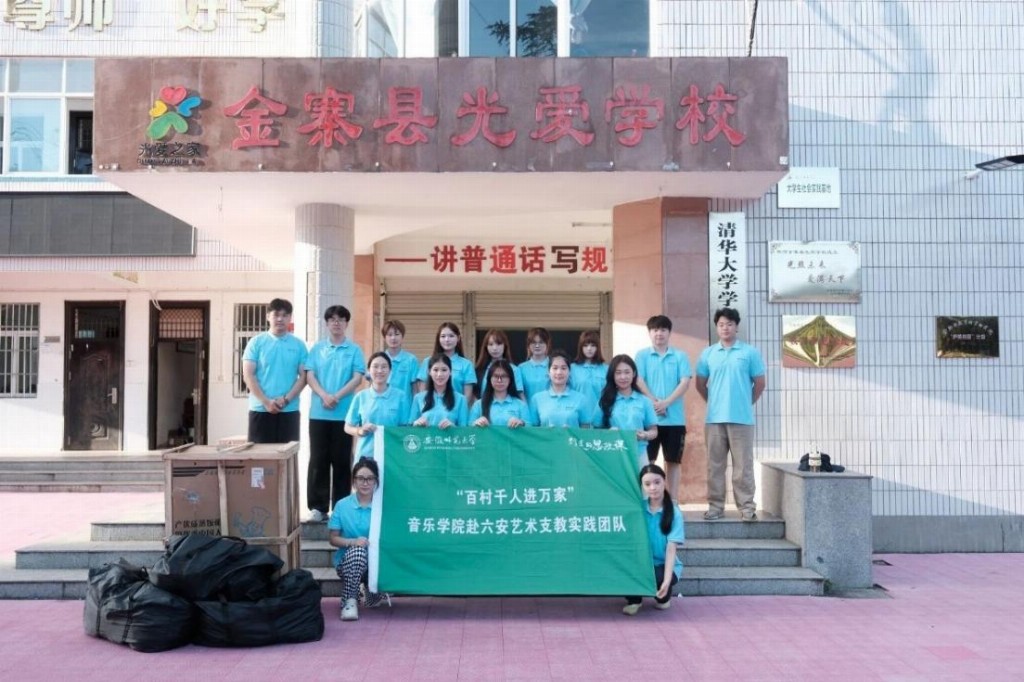 近日,安徽师范大学音乐学院赴六安金寨艺术支教团队18名学子,前往金寨光爱学校开展爱心支教活动,团队发挥专业特长,结合当地实际,设计多模块艺术教学,为当地小学生们开启多彩假期艺术之旅。