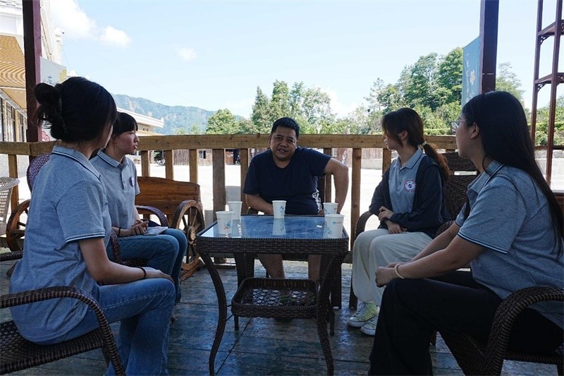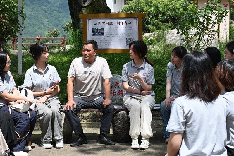 故地重游,收获新知。时隔一年,实践团再次来到石椅羌寨,深入挖掘石椅村乡村振兴与共同富裕的发展道路。在皂树下的访谈中,石椅羌寨陈继述副主任向实践团详细介绍了村寨发展现状:特色农产品品牌建设成效显著,枇杷、脆李和“苔子茶”已形成品牌效应;旅游业与农业深度融合,游客采摘活动既聚拢人气又促进销售。更令人振奋的是,石椅村创新基层人才培养机制,通过专业化培训和学历要求,吸引年轻力量投身乡村建设。实践团成员魏禹如深有感触地表示:“这次重访不仅让成员们深入了解村史,更生动展现了乡村振兴的新模式与红色担当。”