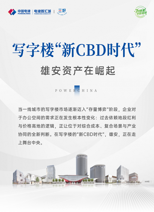 在土地一级市场紧俏、政策利好持续兑现、产业资源加速落地的多重利好下,雄安·电建智汇城所代表的写字楼资产,具备:资产抗周期性、租售两旺的现金流能力、政策+区位+运营的叠加溢价空间。这是写字楼产品,更是资产稳健配置的新一代解决方案。